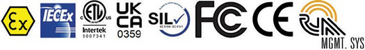 - Certyfikacja do pracy w strefach zagrożonych wybuchem – czujniki są iskrobezpieczne (Intrinsically Safe)